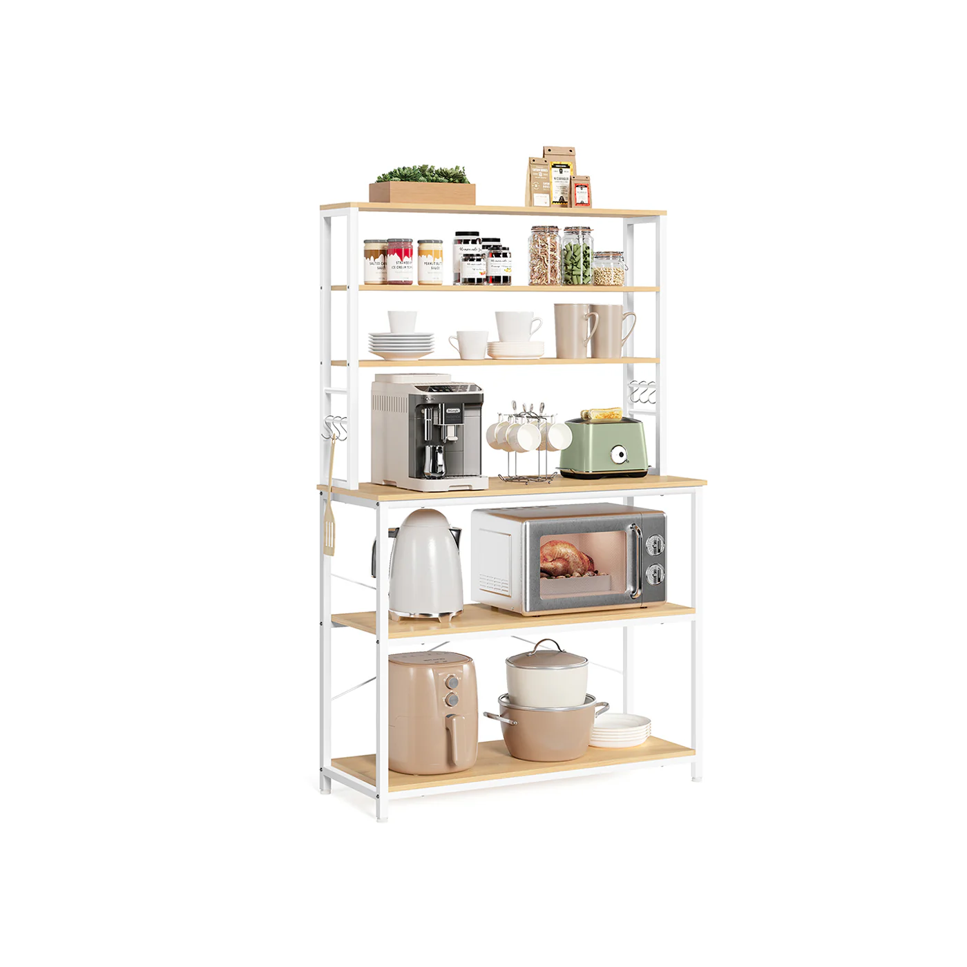 VASAGLE Scaffale da Cucina, Bar, Scaffale da Panetteria, Portaoggetti a 6 Ripiani con 6 Ganci, per Microonde, Struttura in Acciaio, Industriale, 40 x 80 x 167 cm, Colore Rovere e Bianco KKS019W09B34KKS019W09, B34KKS024B02, B34KKS024B01, B34KKS019B02, B34KKS019B01, B34KKS019B22, B34KKS024W09, B34KKS024B22